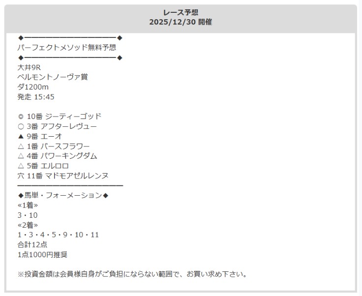 有料情報ではありましたがハンパじゃない結果を届けてくれて2年連続競馬収支大幅プラスを手に入れる為にガンガン使っていきます!