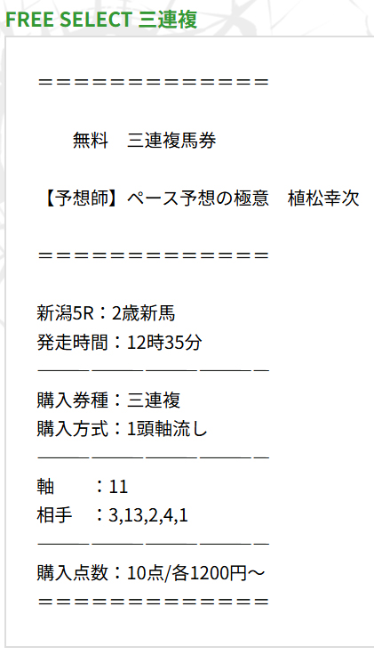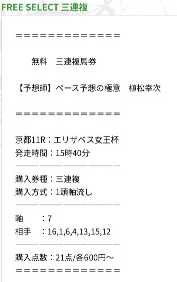 チョイスしたのはエフセレクトって言うサイトの無料予想