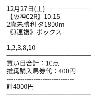 馬券代総額は4000円で財布を痛める事のない優しい支出総額