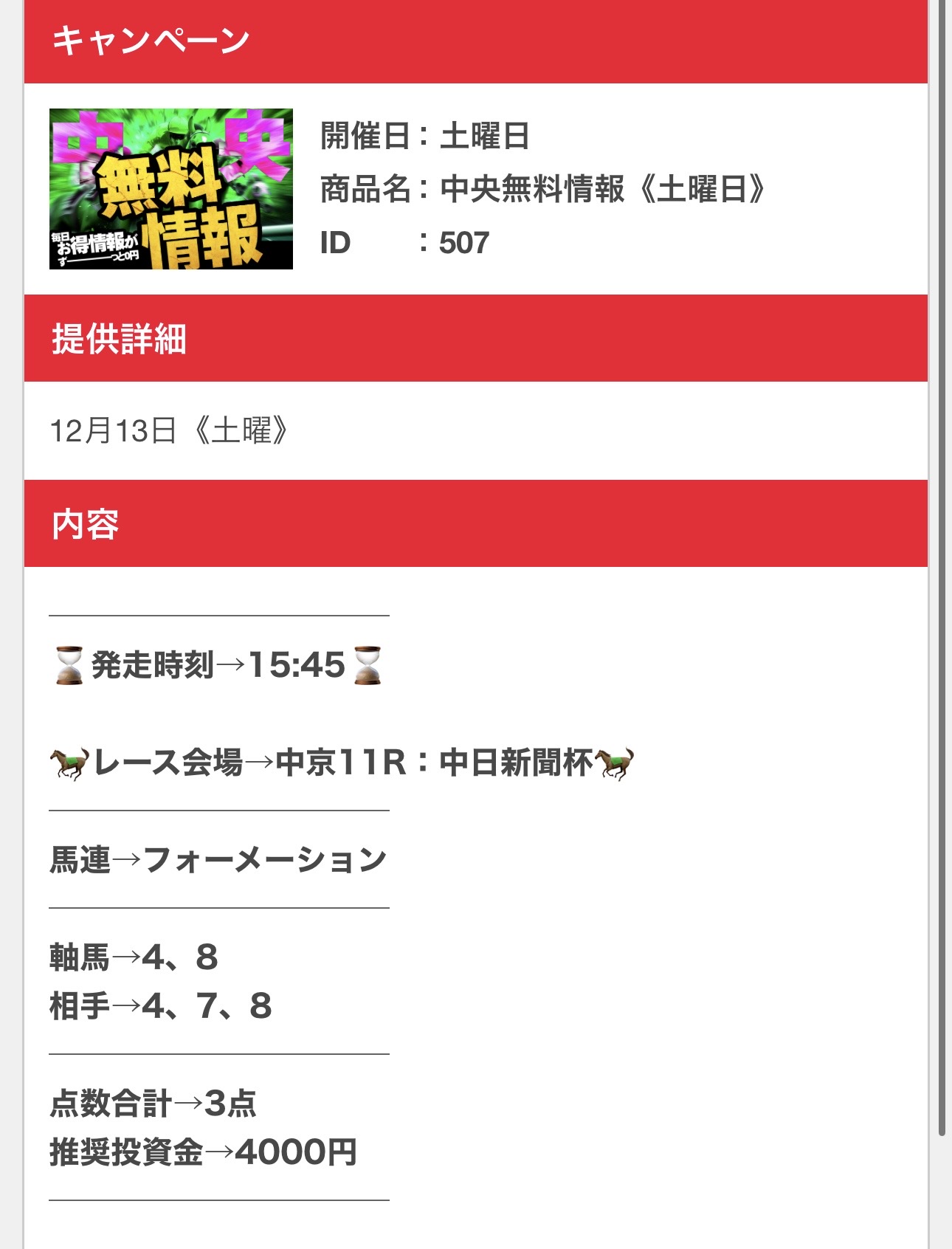 かたかったレースも無料予想で2万3600円獲得!