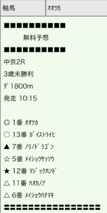 15日(日)中京2Rの印予想は